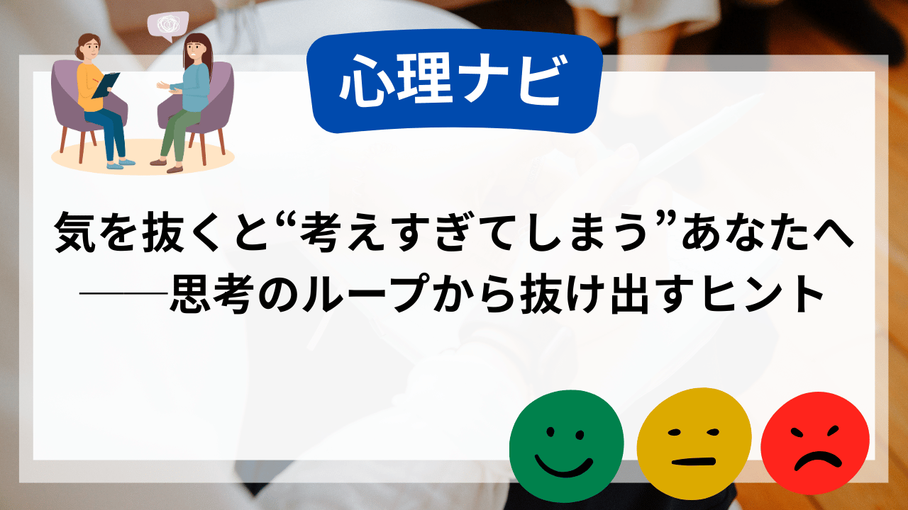 今回は、考えすぎてしまう人の心理的傾向と、そのループから抜けるための方法をやさしく解説します。